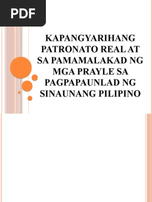 Patronato real nagkapagbibigay ng sariling pananaw tungkol sa naging epekto sa lipunan ng pamamahala ng mga prayle nasusuri ang pagbabago sa panahonan pagganap ng sariling tungkulin sa pagsulong ng kamalayang pambansa tungo sa pagkabuo ng pilipinas bilang isang nasyon.